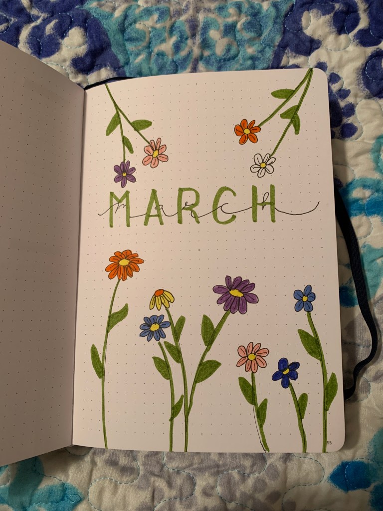 3. Above all, make sure it’s functional for you! You’re the one using it everyday so you need it to work for you and for your brain! If you can’t sit down and make pretty bullet journal spreads like you see online, that’s okay! If you think the simple, minimalistic spreads some people make are too boring, that’s okay too! Find where you are comfortable bullet journaling and do it that way. I personally like a little bit of color, but I don’t have the time or patience for something super extensive. So I settle for a fun, creative month cover page each month, and then I go for simple with a little bit of color for the rest of my monthly pages. Do what works for you!